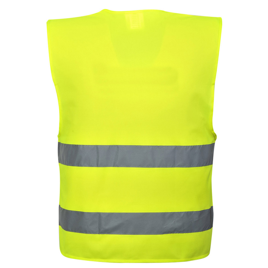 A Jól láthatósági két csíkos mellény biztosítja a maximális láthatóságot, így ideális választás a biztonságos munkakörnyezethez. A mellény könnyen zárható tépőzárral rendelkezik, és 50 mosásra minősített, így hosszú távon is megbízható.