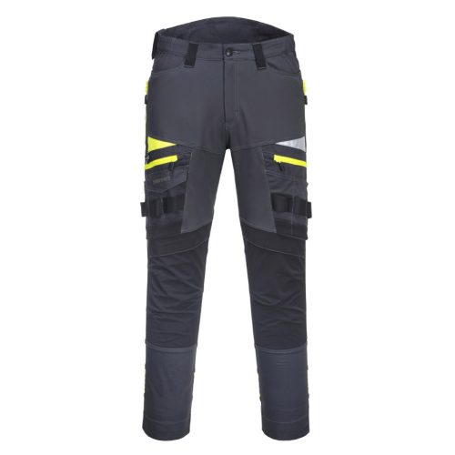 A derekasnadrág nagyobb mozgásszabadságot és kényelmet biztosít a 4 irányban nyúló anyagból készült kialakításnak köszönhetően. Könnyű, rugalmas HiVisTex Pro szegmentált fényvisszaverő szalaggal, 11 sokoldalú, praktikus tárolózsebbel rendelkezik, beleértve a két rétegű térdvédő zsebeket, a colstok tartó zsebet és a hátsó nagy zippzáras zsebet.
