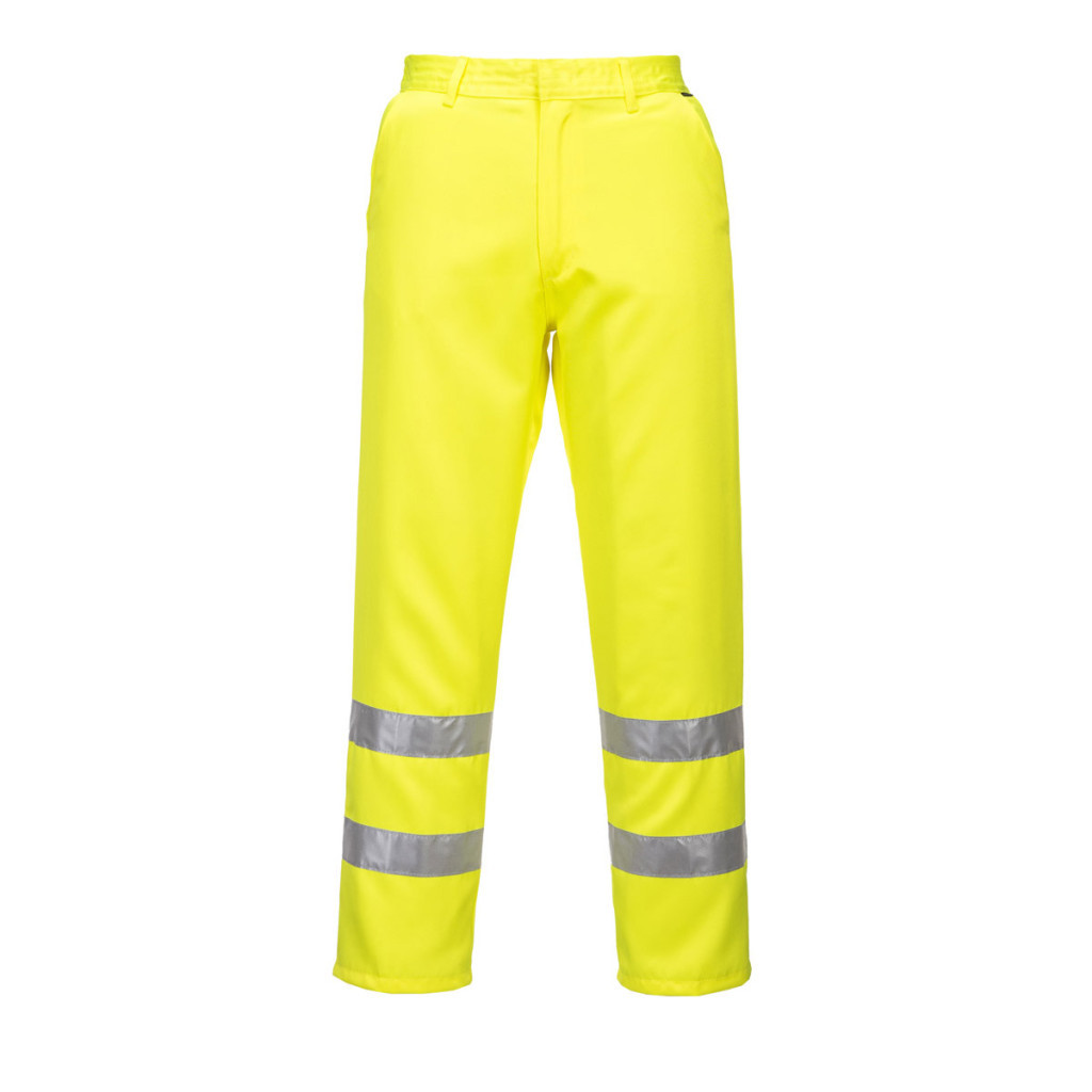 A jól láthatósági nadrág 80% poliészter és 20% pamut anyagból készült, 280g súlyú. Texpel folttaszító bevonattal rendelkezik, amely megkönnyíti a tisztán tartást. Három tárolózsebbel, hátul gumírozott derékkal, és a lábszárakon fényvisszaverő csíkokkal rendelkezik, amelyek ipari mosodai körülmények között is legalább 60 mosásig megtartják fényvisszaverő tulajdonságukat.