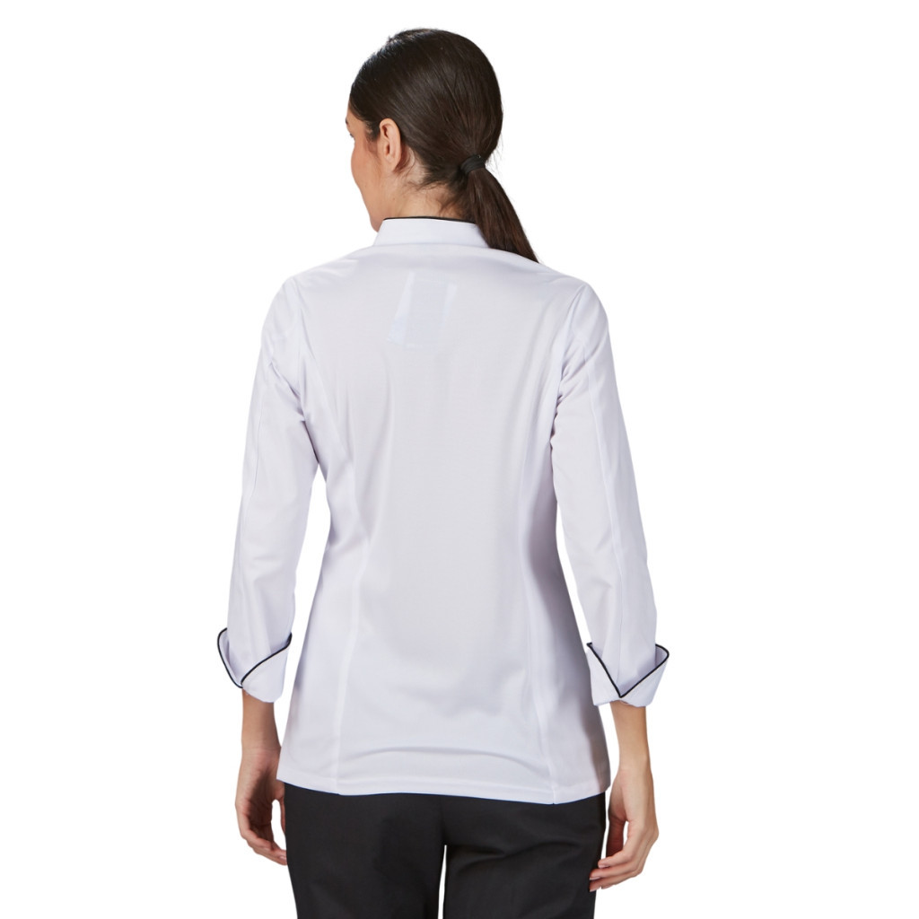 Ideális, ha olyan női szabású, strapabíró séfkabátot keresel, ami kényelmesen követi a testvonalait, és közben a kontrasztos részletekkel igényes, elegáns megjelenést ad.