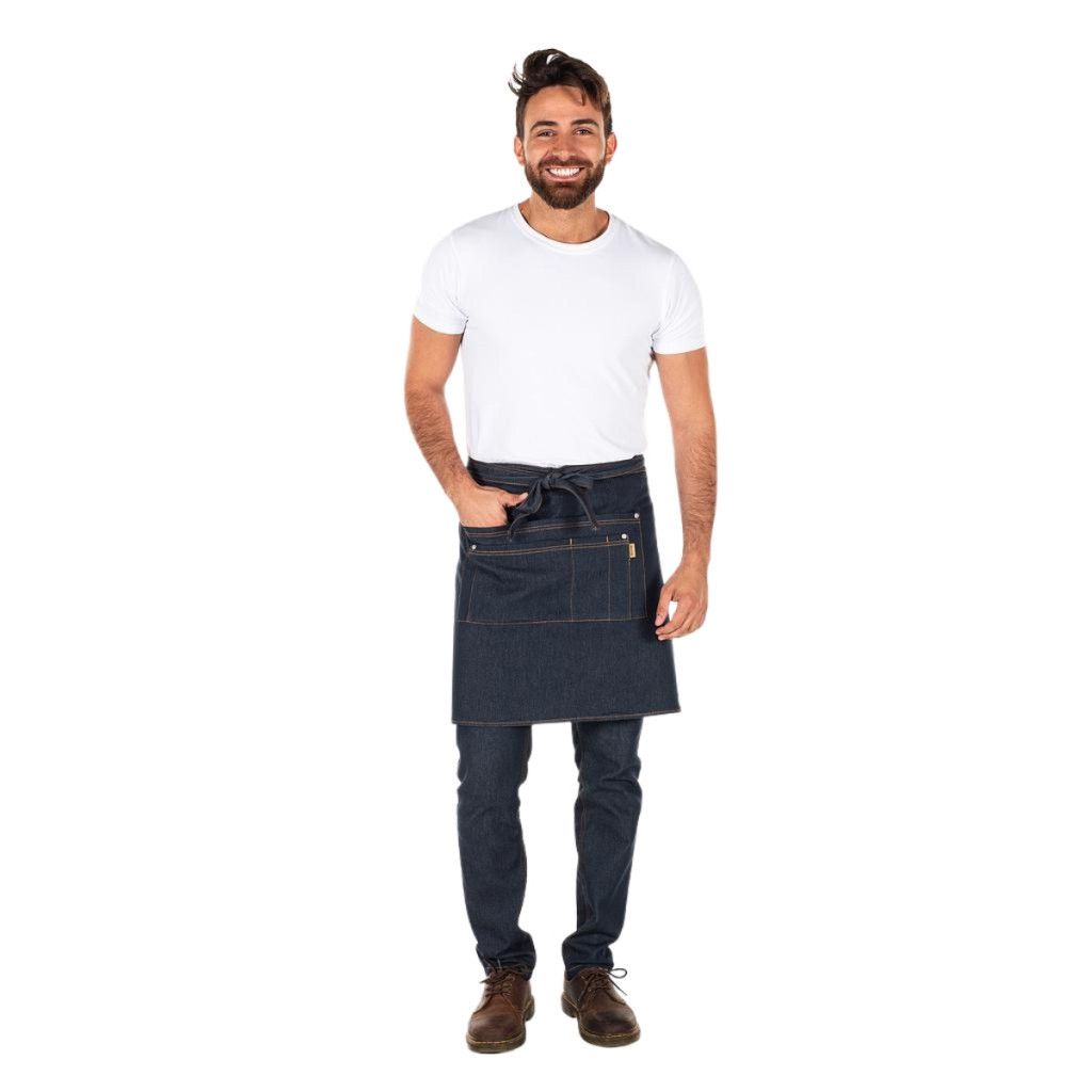 A GARYS JORDANIA derekas kötény rövid fazonú, rugalmas elastic denim (farmer) anyagból készül (65% poliészter / 32% pamut / 3% elasztán, 260 g/m²), így kényelmes mozgásszabadságot ad, miközben intenzív használat mellett is jól tartja a formáját.