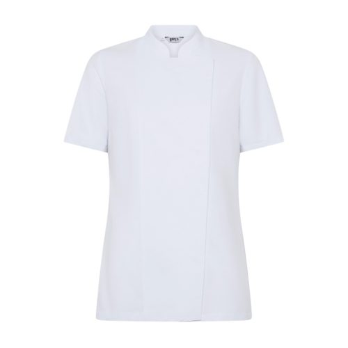 A GARYS PAZ női rövidujjú séfkabát mao gallérral, átlapolt fazonnal és rejtett patentos záródással készül, a karcsúsított szabás és a mellvarrások pedig csinos, kényelmes illeszkedést adnak a konyhai munkákhoz.