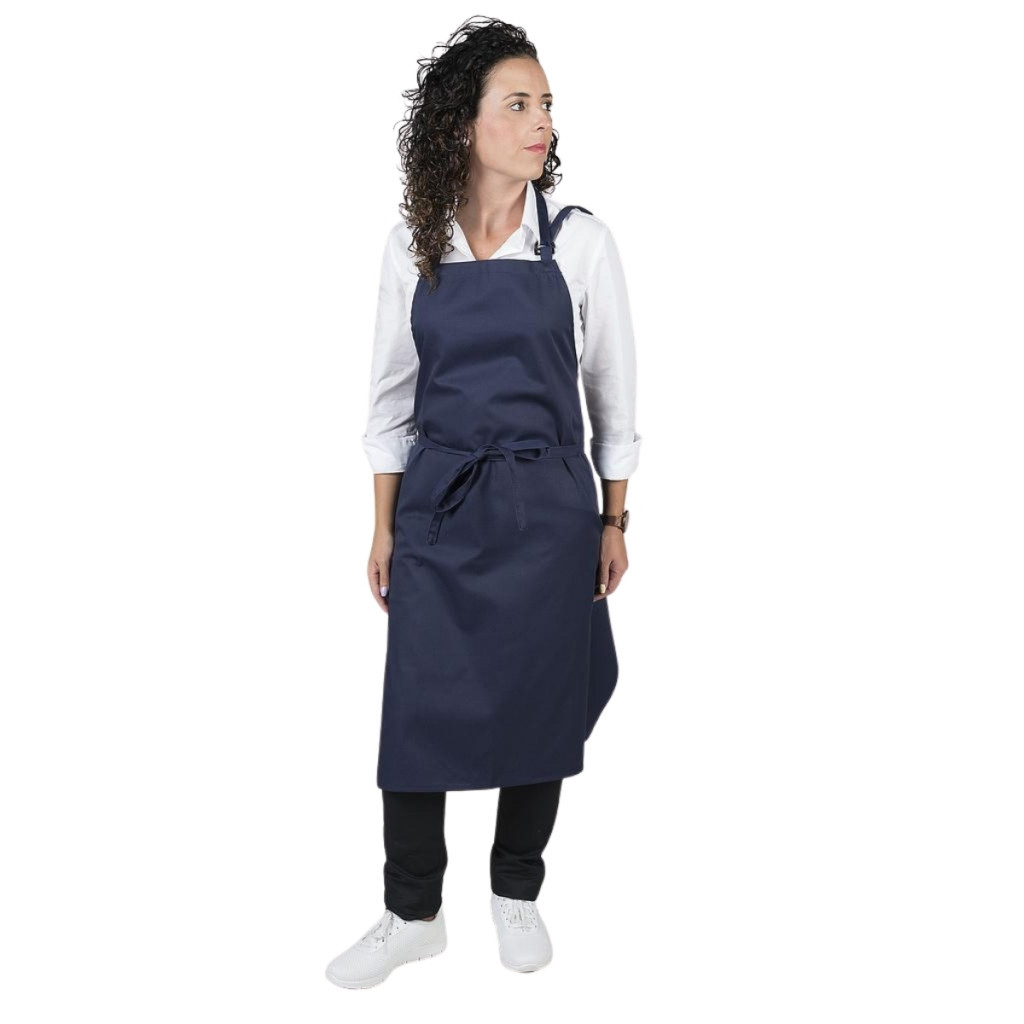 A GARYS zseb nélküli kötény melles kialakítással, állítható nyakpánttal és csattal, valamint megkötőkkel készül, így kényelmesen beállítható és stabilan a helyén marad konyhai, éttermi vagy kereskedelmi munkák során.