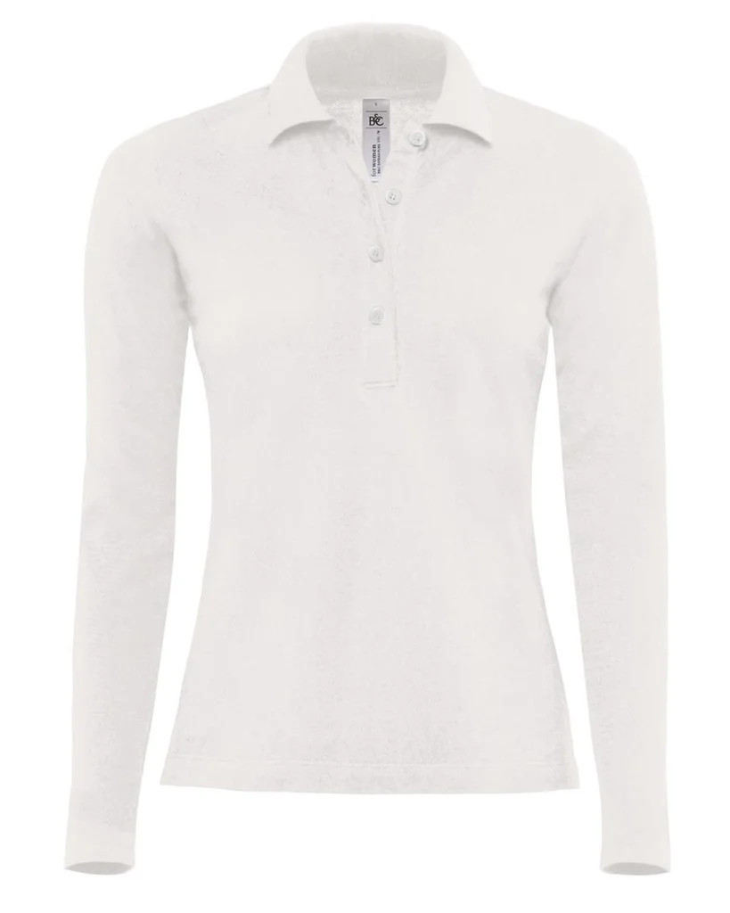Hosszú ujjú galléros női póló B&C PW456 fehér L