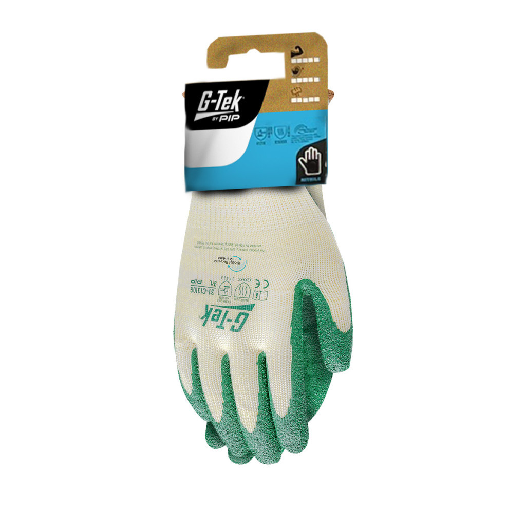 G-TEK újrahasznosított poliészter, latex tenyérmártott munkavédelmi kesztyű – bliszteres