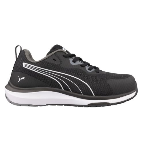A Puma Celerity Knit BLK/White Low rugalmas SAFETY KNIT® felsőrésszel készült védőcipő S1PS minősítéssel, acél orrmerevítővel és FAP® LITE talplemezzel.